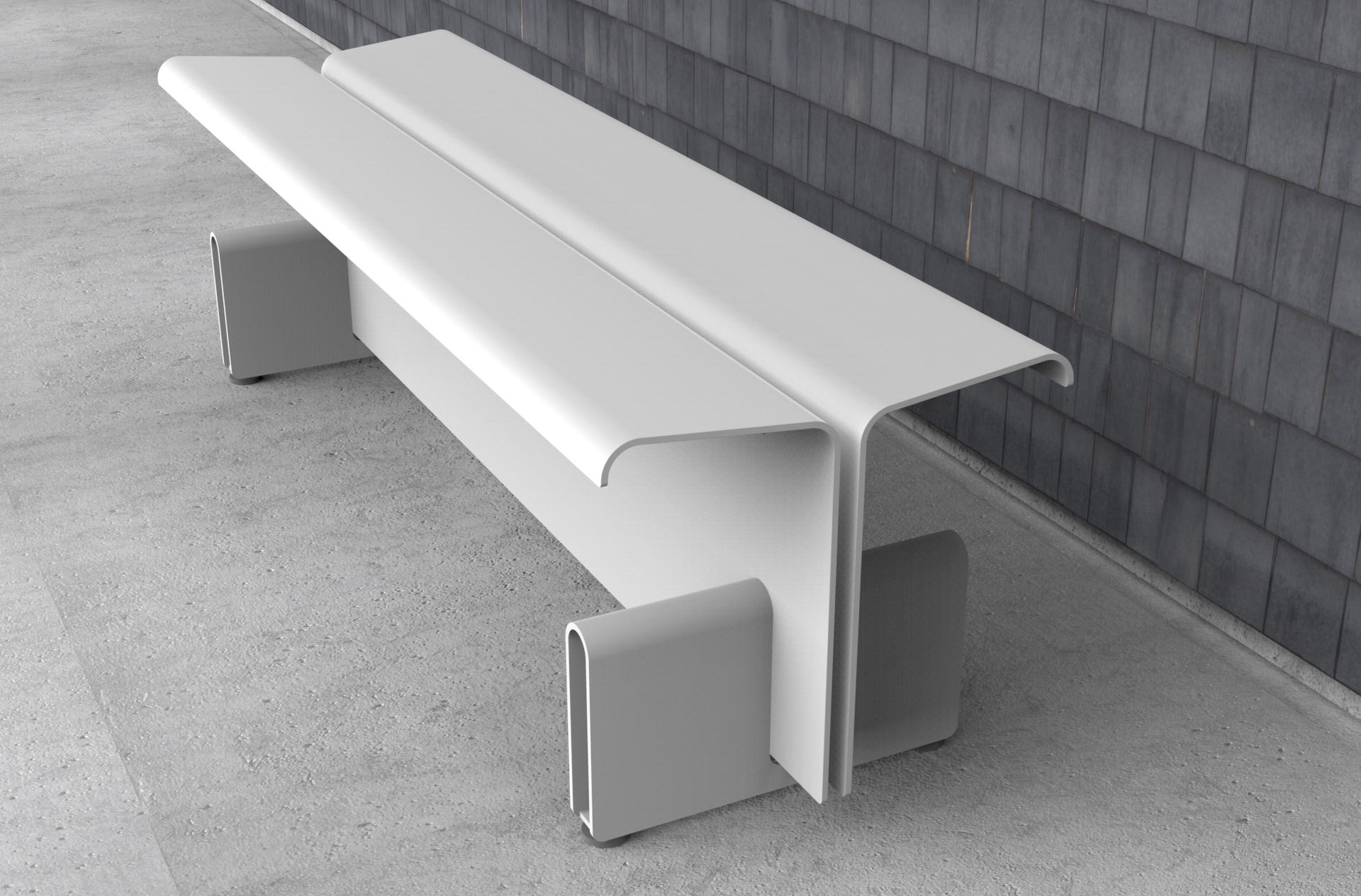 The Paper Airplane bench is based on the classic format of 2 large planks resting on 2 simple blocks. Many times these are all made of wood, or wood and stone respectively. Wanting to create a fresh version of this classic, and with sustainability in mind, aluminum was the perfect direction.